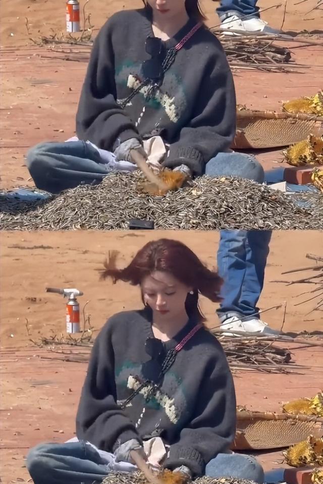 一会功夫杨超越的前面就已经有了一个小小的瓜子堆了,可见她干的有多快,很多网友调侃说感觉杨超越可以开辟一个新赛道:干活赛道!